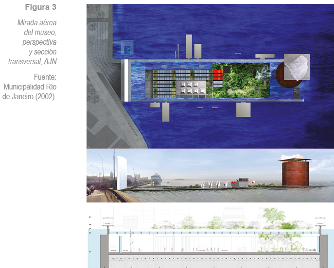 El museo de Río de Janeiro se integraría al tejido urbano. De manera análoga, de la extensa construcción del Museo Guggenheim Río, solo quedaría “su deliberada negativa a ser un edificio monumental, su voluntad de sumergirse ante la ciudad” (Moreira & Rivera, 2002). Posiblemente, se sume discretamente a la ciudad y fortalezca la idea de la desaparición.