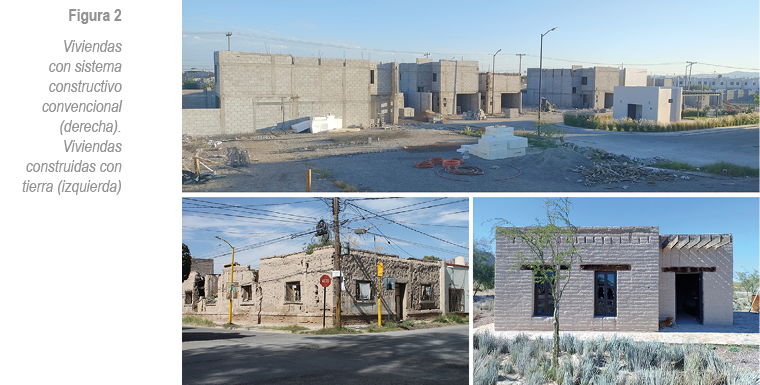 En Coahuila aún persiste una tradición que emplea la tierra como material de construcción que se remonta a varios milenios en los que se han edificado viviendas con tierra amasada, adobe y entramados de tierra, adaptadas a las condiciones climáticas áridas, con lo que se hace un uso racional de los escasos recursos hídricos. Por tal motivo, se considera relevante reinterpretar tales técnicas tradicionales para la construcción de vivienda desde una visión contemporánea y sostenible. En la Figura 2, se muestran dos tipologías constructivas de vivienda urbana en Torreón, Coahuila.