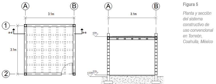En la Figura 5, se observan las características espaciales y constructivas del sistema convencional.