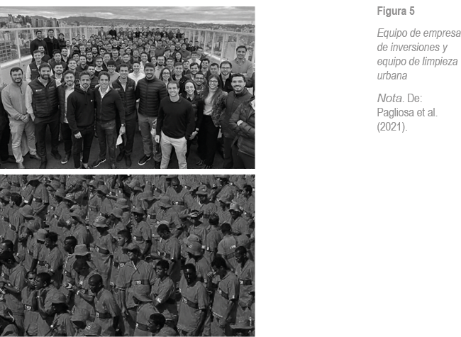 La Ley de Cuotas (Lei 12.711, 2012) garantizó el acceso de las personas negras a la educación superior, pero no vino acompañada de una política de inserción en el mercado de trabajo. Cabe considerar que este tipo de política afirmativa constituye un desafío aún mayor, ya que el racismo está impregnado en la sociedad de una forma profunda y con tecnologías sofisticadas de opresión; y cuando se trata de relaciones comerciales regidas por el capital, se manifiesta de manera más exacerbada. Para ilustrar este escenario, es posible recurrir a una imagen que alcanzó bastante difusión en las redes sociales en el 2021, la cual se presenta en la Figura 5.