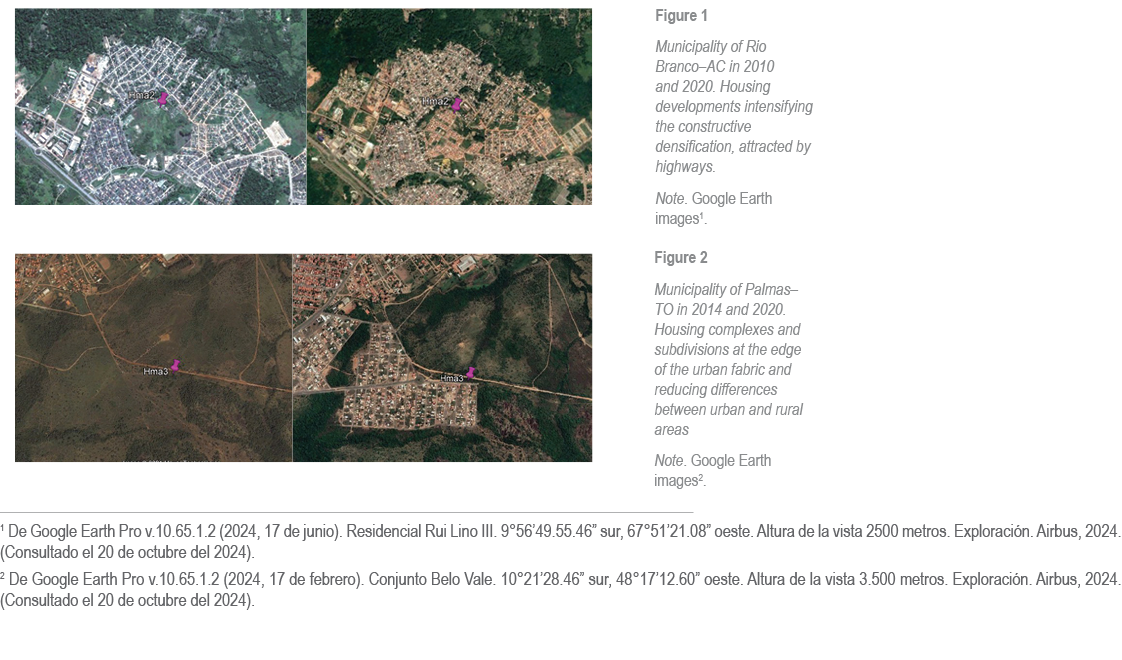 In summary, the evidence confirms the expansion of urban fabric and urban sprawl driven by new real estate developments, as occurred in Maricá-RJ; the interconnection of neighboring cities, disrupting classical hierarchies related to commuting patterns, as observed in the Região Metropolitana de Natal-RN; the growing reliance on transportation infrastructures, as evidenced in the urban cluster of Maringá-PR; and the replication of a metropolitan lifestyle through extensive urbanization in the Amazon. The effects of these elements are amplified by the widespread diffusion of infrastructure provisions that provide economic, legal, and material security, facilitating urban fabric growth.
