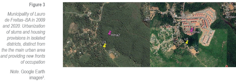 There is also an imminent sprawl of villages and isolated communities from urbanized districts. Present in the Northeastern backlands, the interior of the North region, and the low-industrialization cities in the Midwest, Southeast, and South, these small villages and communities are considered rural areas by planning instruments but function as important commercial, political, and religious centers within the areas under their influence (Tavares et al., 2020). This places strain on the urban fabric and, for political and/or productive reasons, leads to the development of secondary urban fabrics.
