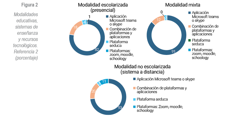 La aplicación Microsoft® Teams® fue utilizada de manera generalizada por la comunidad universitaria en la UAEMéx, a partir de la interrupción de las actividades presenciales por la contingencia del COVID-19 (marzo del 2020). Hasta la fecha, el recurso en cuestión es el preferido para la realización de actividades académicas en las diversas modalidades. Moodle® (LMS) y Zoom®, la aplicación de colaboración en línea, son considerados útiles para la modalidad no escolarizada por una quinta parte de la población estudiantil que participó en la encuesta. Esto ocurre incluso en comparación con Seduca (véase la Figura 2), la plataforma LMS desarrollada institucionalmente y utilizada desde el año 2004, que sigue siendo empleada en diversas modalidades.
