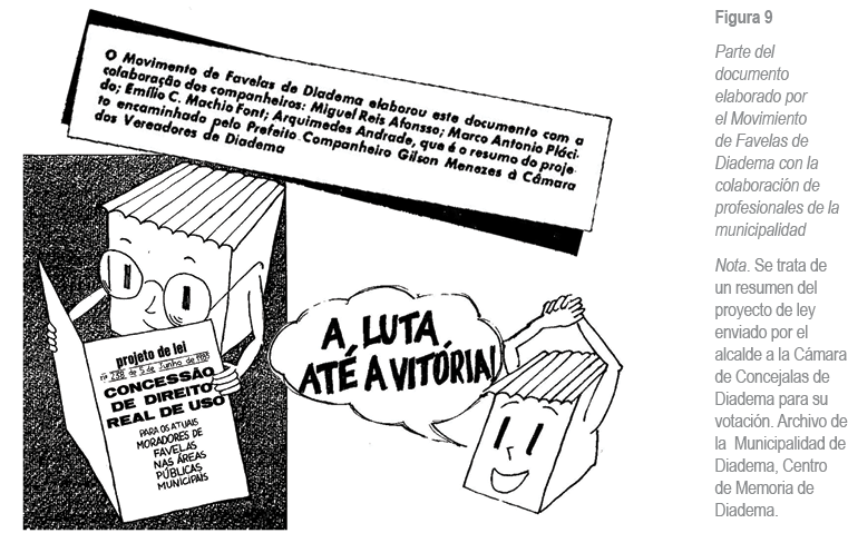Es importante destacar que, en su mayoría, los residentes estaban políticamente comprometidos y contribuyeron al desarrollo industrial de la región del ABC. Esta realidad refuta el mito de que los habitantes de las favelas son incapaces de adaptarse a la vida urbana u organizarse socialmente. Perlman argumenta que los estereotipos de la marginalidad sirven como instrumento político para justificar las políticas de desalojo propuestas por las clases dominantes, las que paradójicamente dependen de los productos y servicios producidos por los migrantes y residentes de las favelas (1977, p. 17). En este contexto, el equipo de urbanización se unió a los residentes y los apoyó en sus políticas en contra del desalojo.