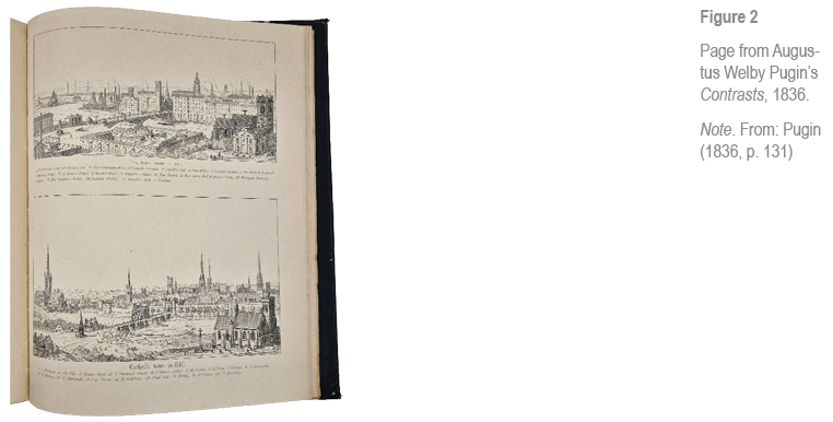 Pugin, A. W. N. (1836). Contrasts: Or, a parallel between the noble edifices of the Middle Ages and corresponding buildings of the present day. Printed for the author. https://books.google.com.pe/books/about/Contrasts.html?id=vKRWAAAAMAAJ&redir_esc=y