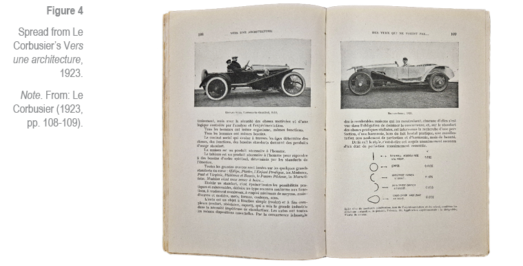 The Futurist visions remained paper architecture, but when Le Corbusier published his own manifesto, Vers une architecture, in 1923, he pursued the same iconicity through more nuanced means (Le Corbusier, 1923). Vers une architecture was charged with the same ambition that Sant’Elia infused in his leaflet, yet it took the form of a book.
