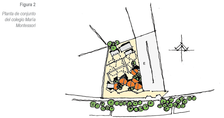 Situada en la capital del estado de Sinaloa (noreste de México), la ciudad costera de Mazatlán se asienta en un valle entre la Sierra Madre oriental y el océano Pacífico, y se caracteriza por presentar un clima cálido semiárido y húmedo, con una temperatura promedio de 48 °C y una humedad relativa anual de 66 %. El proyecto conjunto del despacho EPArquitectos y del Estudio Macías Peredo consiste en un sistema de módulos de planta hexagonal que contienen las aulas del colegio, las cuales se estrechan para generar un pasillo perimetral porticado alrededor de ellas. El diseño permite el desarrollo en etapas, lo que facilita su expansión conforme a las necesidades. Integra espacios verdes y zonas exteriores que favorecen la interacción con la naturaleza, y promueven la identidad local y contribuyen a la formación de ciudadanos comprometidos con el medioambiente y la sociedad (véase la Figura 2).