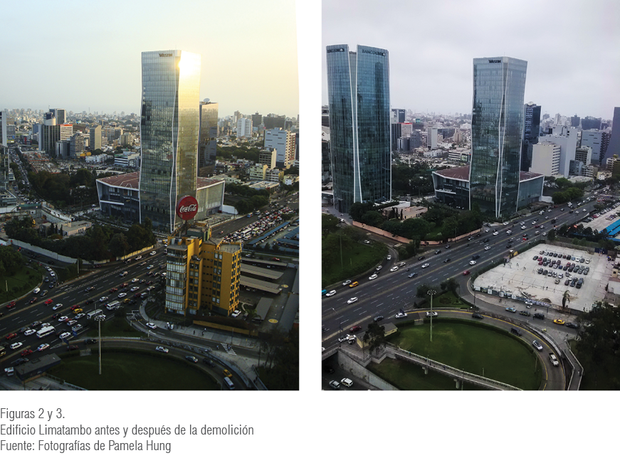 El exedificio Limatambo quedará en nuestra memoria como el recuerdo de un edificio que pudo integrarse a una propuesta arquitectónica moderna, como alternativa de convivencia del pasado con el presente, pero que sucumbió ante un vacío de normatividad, ante la indiferencia de las autoridades y el pragmatismo de las constructoras.