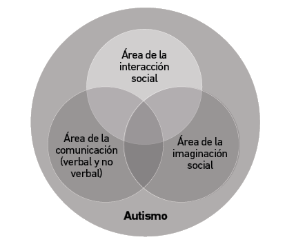 Entre las décadas de los sesenta y ochenta, la perspectiva migró hacia un enfoque más educativo desde una visión cognitiva. En estos años, destacan las contribuciones de Wing y Gould (1979), quienes retoman las investigaciones de Hans Asperger y plantean el autismo en términos de espectro autista. Wing (1998, como se cita en Diazgranados & Tebar, 2019) describe una tríada característica en la que se evidencia la alteración de tres áreas en el desarrollo del ser humano (véase la figura 1), todo ello asociado a la presencia de intereses restringidos y patrones repetitivos de conducta.