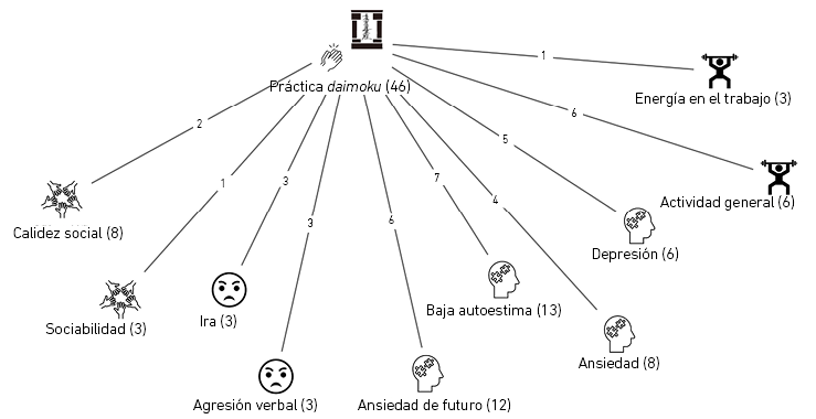 Desde un punto de vista psicológico, y tomando en cuenta los puntajes de las escalas y el análisis de las narrativas presentado anteriormente, el daimoku puede ser entendido como una práctica cultural que podría relacionarse con cambios positivos en el manejo de la ansiedad, el estado de ánimo y la motivación, pudiendo incluso dar una mayor energía mental a nivel general y laboral. También podría ser relevante para entender las puntuaciones más altas en torno a un menor impacto percibido de la pandemia del COVID-19 en las dimensiones laborales, económicas y familiares. Otro posible efecto del daimoku podría ser a nivel de cognición social, lo que se evidencia en los puntajes más altos en algunas facetas del rasgo de sociabilidad-extraversión y puntajes más bajos en algunas de las variables vinculadas con agresividad-hostilidad. En este último aspecto, las experiencias de los participantes sugieren un efecto en cuanto a la empatía.