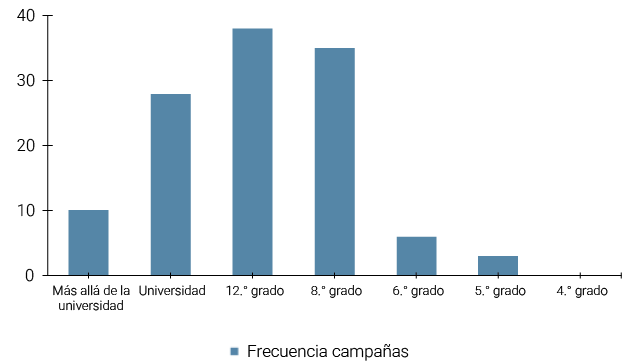 a. En primer lugar, en el caso de “Campañas y eventos”, nuestro estudio analizó una muestra circunscrita correspondiente a un periodo de actualización de la información entre mayo y octubre del 2023. Luego de ese periodo, el contenido pudo ser modificado o actualizado.