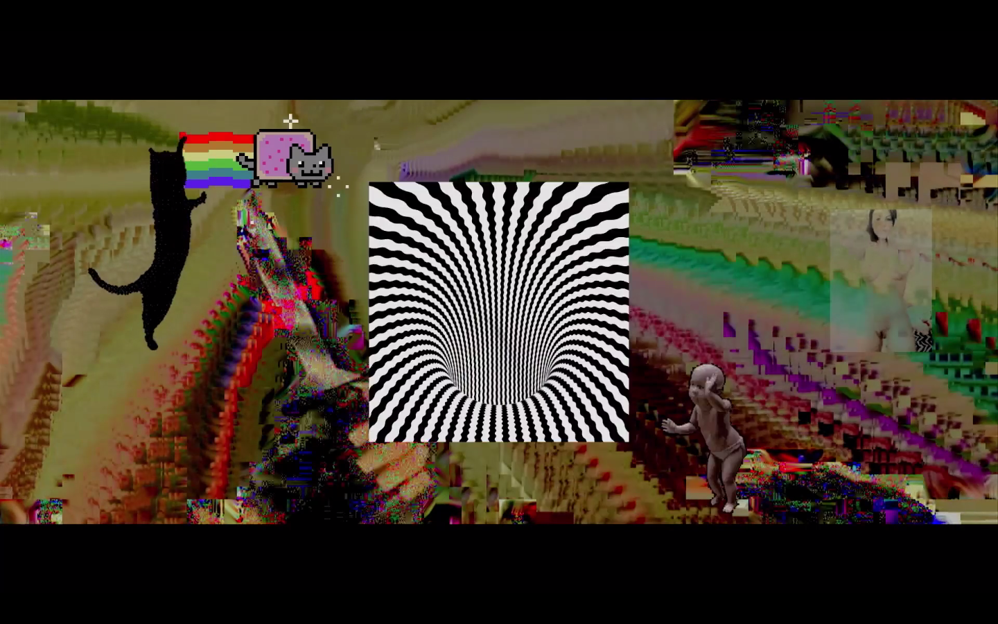 A pretensão de corromper a produção audiovisual teve como um dos resultados o datamoshing, uma técnica de compressão que remove keyframes de um arquivo, fazendo com que os píxeis do vídeo se “derramem”. Deletando dados das imagens estáticas identificáveis do vídeo (conhecidas como I-frames), as informações abstratas (os P-frames) preenchem os espaços entre as imagens (como pode ser visto na abertura deste artigo nas Figuras 1 e 2).