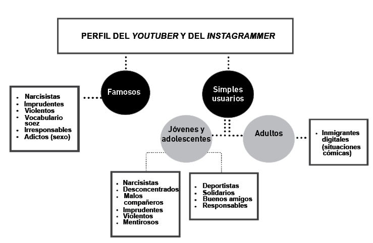 Para comenzar, diremos que el análisis de las películas sobre youtubers e instagrammers nos lleva a distinguir entre protagonistas que son influencers famosos y protagonistas que simplemente son usuarios de estas plataformas. En el primer caso, el estudio nos dibuja un perfil de influencers profesionales consolidados, hombres o mujeres en los que dominan rasgos de personalidad negativos: son superficiales, narcisistas, imprudentes, con adicciones especialmente al sexo, acostumbran a usar un vocabulario soez y frecuentan las bromas de mal gusto. En el segundo, se observa una mayor diversidad. Entre los adolescentes que son asiduos a estas redes, si bien dominan jóvenes descentrados y superficiales, malos compañeros y adictos al alcohol o al sexo, que persiguen el éxito efímero, aun mediante el engaño; aparecen otros personajes con rasgos positivos en su personalidad: encontramos adolescentes que son entrañables, solidarios, deportistas. Especialmente los rasgos de una personalidad con valores aparecen en los documentales más que en películas ficcionadas.