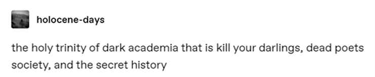 KEYWORDS: The Secret History / fandom / Dark Academia / Tumblr / aesthetic