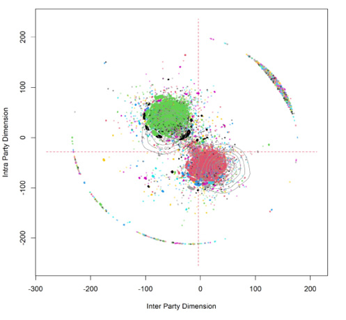 Barberá, P. (2015). Birds of the same feather tweet together: bayesian ideal point estimation using Twitter data. Political Analysis, 23(1), 76-91. https://doi.org/10.1093/pan/mpu011