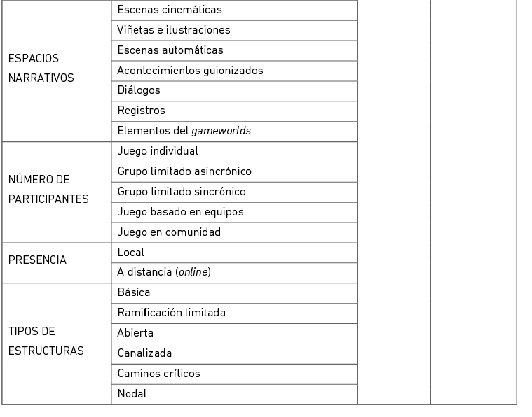 También se ha visto necesario agregar valores de la agencia de usuario y la especificidad del medio (Koenitz, 2018), como puede verse en las tablas 2 y 3.