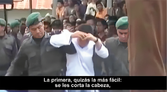 Con respecto al estilo, la construcción de las oraciones es clara, concisa y simple, facilitando la comprensión del receptor y focalizando el mensaje en algunas palabras o conjuntos de palabras dirigidos a concebir la inmigración como un peligro. Ejemplo de esto es “Vox exigimos que se protejan nuestras fronteras y se acabe con el ‘efecto llamada’” (Vox España, 2018). De nuevo, la construcción de las oraciones refleja el binomio miedo/esperanza. En lo visual este binomio también se deja patente, sobre todo en el primer vídeo (Vox España, 2018) y en el último (Vox España, ٢٠٢١b), pues es un collage con cortes de entrevistas realizadas a Santiago Abascal, líder del partido (véase la Figura 1), junto a los problemas y el ataque que supone la inmigración (véase la Figura 2). En la Figura 2, se observa cómo incluyen subtítulos para traducir lo que dice, supuestamente, el Islam, junto con el apoyo visual que complementa el discurso.
