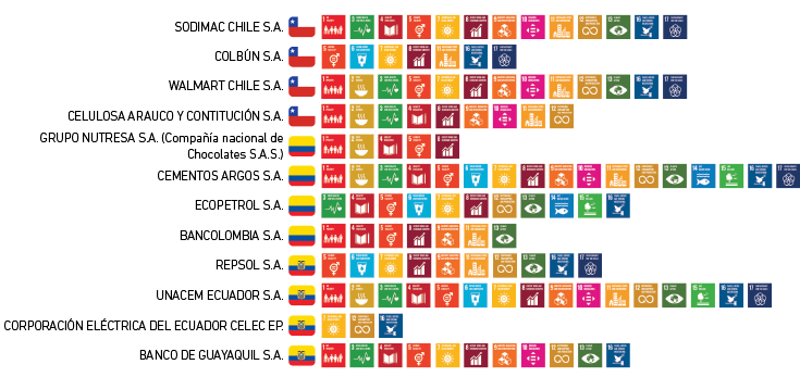 Within this framework, the present study examined the 2021 sustainability reports issued by 12 large companies from Ecuador, Colombia, and Chile in strategic sectors such as energy, mining, oil and gas, construction, banking, and food and beverage. The reports, which were downloaded from the companies’ websites, were analyzed to shed light on the actions carried out by various business sectors in relation to each of the SDGs.