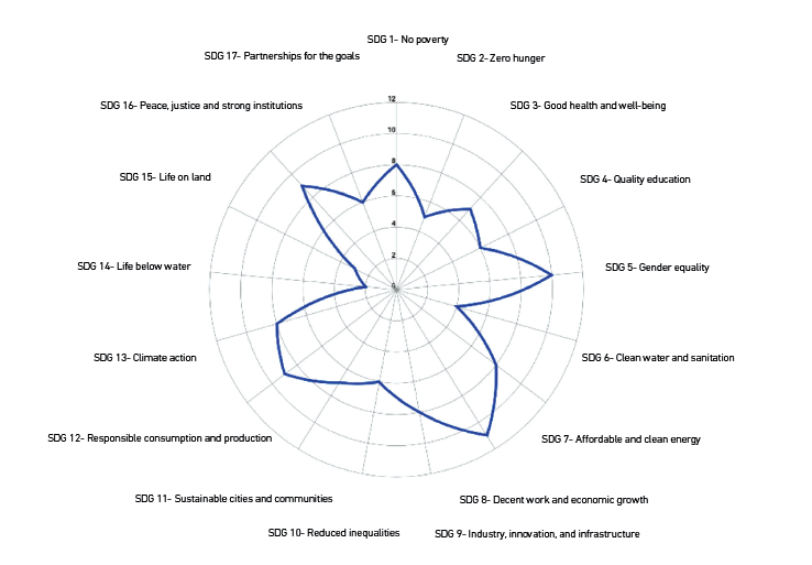 In keeping with social trends, the promotion and strengthening of gender equality, identified as SDG 5, was highly prevalent in the studied annual reports. Out of the 12 companies, 10 mentioned it in their reports and provided details on the initiatives toward its achievement during 2021.