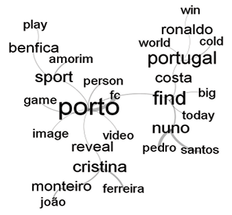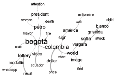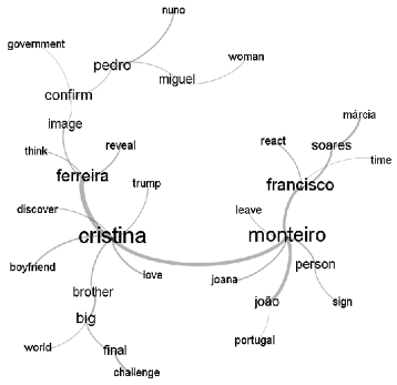 On the homepages, it is observed that in Brazil, there is a thematic concentration of clickbait related to news about celebrities and television programs, highlighted by terms like “BBB” (Big Brother Brasil) and the names of entertainment personalities. Additionally, to a lesser extent, names of politicians such as Lula and Bolsonaro also appear. This trend is also notable in Portugal, where clickbait news essentially focus on entertainment and celebrity topics. In Colombia, although entertainment-related news remains prevalent, there is a greater thematic diversification, with more terms related to politics, business, and technology, similar to what is seen in Mexico. In contrast, Google News Spain shows a broader thematic diversification, evidenced by the dispersion of terms and a slight difference in the thickness of the graph edges, encompassing topics such as technology, politics, business, and entertainment.