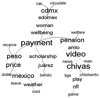 The identification of people’s names in news headlines allowed for tracking the most frequently mentioned personalities in Google News’ coverage. A pre-trained BERT model was used to recognize names. In a post-processing stage, variations referring to the same person (e.g., “Trump” and “Donald Trump”) were consolidated using a country-specific predefined association dictionary, which also includes acronyms (e.g., “AMLO” for Andrés Manuel López Obrador). This association dictionary was created through empirical observations of the news articles comprising the database. The accuracy measured during the validation procedure reached 95.40 %.