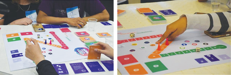 El juego contiene 24 preguntas, organizadas en tres dimensiones: ocho5 para democracia, ocho para pluralismo y ocho para ciudadanía, y cartas comodines que pueden ser utilizadas una sola vez en cada dimensión. Las preguntas son de tres tipos: abiertas, alternativas y de desafío. Cada una consideraba un puntaje: No logrado = 0, cuando la respuesta no se relacionaba con la pregunta o el estudiante se quedaba en silencio. Insuficiente = 1, cuando la respuesta aportaba algunos elementos esperados, pero no citaba ideas centrales esperadas para la dimensión. Suficiente = 2, si la respuesta expresaba una reflexión sobre los aspectos centrales esperados de la dimensión (Antezana et al, 2022). En la dimensión democracia, las preguntas abordaron temas electorales, búsqueda de información, medios de comunicación y asuntos democráticos; en pluralismo, se plantearon interrogantes sobre liderazgo, ideas políticas, acceso a información; y, en ciudadanía, se consultó respecto a feminismo, verificación de información, diversidad sexual, migración y aborto.