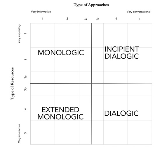Organizations alternate between different communication resources and, depending on the design and features of each social network, they apply either one or the other to attract audiences and promote meaningful dialogue (Kent, 2013; Kent & Taylor, 2021). Previous studies have identified two main types of resources: expository and interactive (Capriotti et al., 2024; Ji et al., 2017; Wu et al., 2022; Yue et al., 2023).