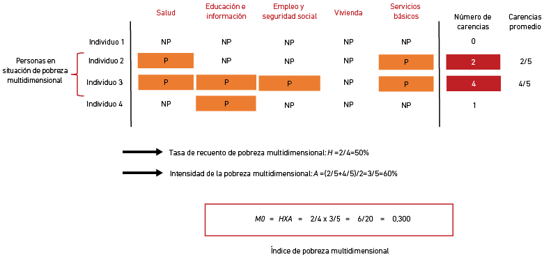 Las medidas monetarias por sí mismas no logran incorporar aspectos del bienestar humano, como el adecuado acceso a servicios públicos. Más bien, pueden invisibilizar a una proporción de la población que, sin tener pobreza monetaria, es pobre multidimensional (Banco Mundial, 2018). Por ese motivo, es importante construir un indicador de pobreza multidimensional que capture y agregue las privaciones no monetarias en un solo indicador, lo que permite complementar las mediciones del enfoque monetario (Banco Mundial, 2018).