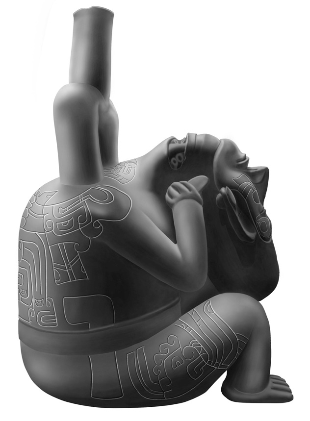 Todos estos elementos pueden ser observables en ciertos objetos artísticos del periodo en cuestión. Soportes como la cerámica, el arte rupestre o la talla lítica evidencian la figura de este personaje tanto en México como en el Perú, inclusive en zonas intermedias como lo son Guatemala, Panamá, Colombia y Ecuador (Saunders, 1998).