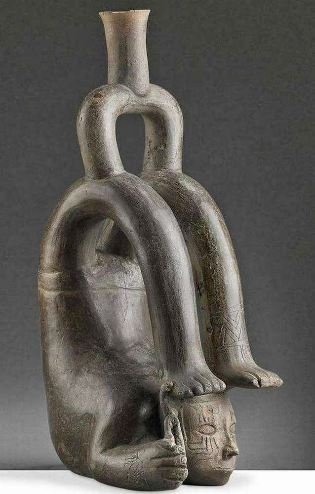 Nota. De Museo de Arte de Lima, botella cupisnique de asa estribo con representación de contorsionista, 1200 - 500 a. C. (https://coleccion.mali.pe/objects/116/botella-de-asa-estribo-con-representacion-de-contorsionista).