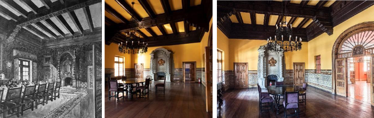 Fotografías del comedor del palacete en diferentes épocas