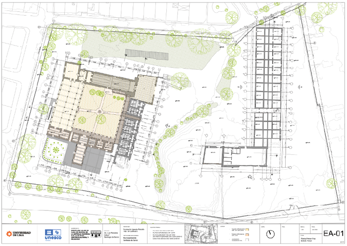 Plano de anteproyecto de puesta en valor de la casa y la iglesia de la antigua hacienda San Juan para centro cultural y religioso