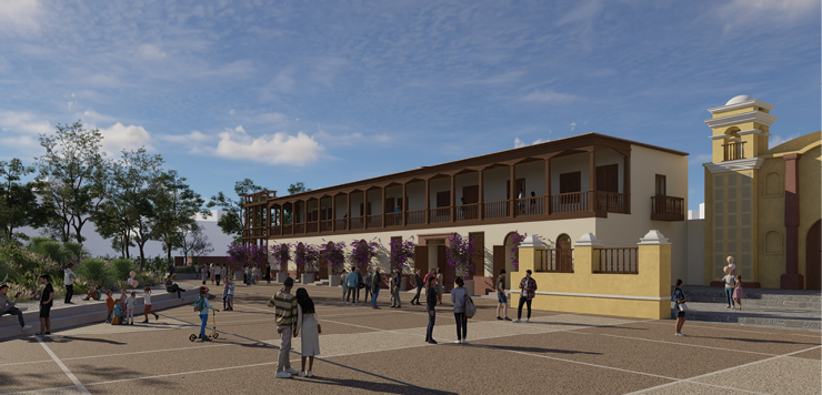 Vista de la propuesta de puesta en valor de la casa y la iglesia de la antigua hacienda San Juan