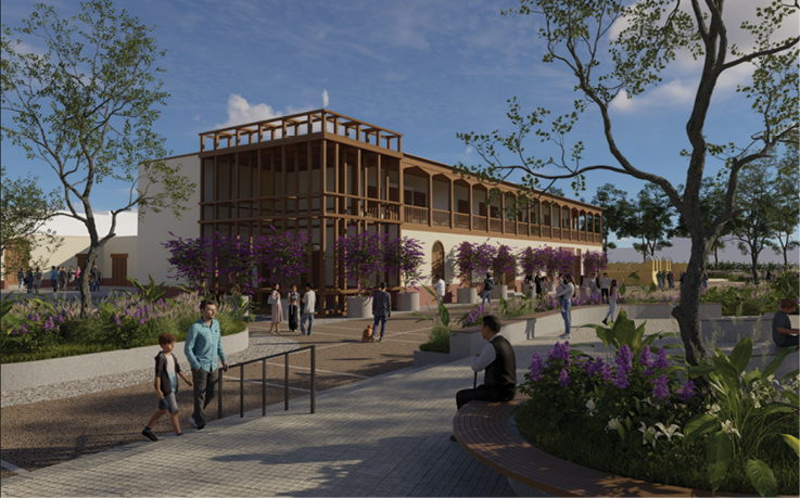 Nota. Visualiza Studio (2024) Vista de la propyuesta de puesta en valor de la antigua haienda San Juan [imagen generada en D5 Render]. Archivo del proyecto Recuperación de la Casa Hacienda San Juan Grande, Facultad de Arquitectura de la Universidad de Lima.