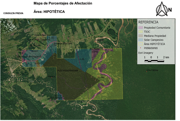 Geographic Information Systems (GIS) are currently used in a wide variety of work with human groups, with Prior Consultation – in mining matters – being one of the tasks that requires the most precision and detail, given the sensitivity of the topic among the Indigenous Originary Peasant Nations and Peoples of Bolivia. This document constitutes an example of the application, in a hypothetical case, of GIS, with the objective of presenting the procedure tested and successfully applied in sociocultural information collection procedures between 2019 and 2020, to help improve the Prior Consultation process at the stage of Identification of Subjects of Consultation for mining projects, in any country that requires it. The procedure explained refers to the pre-processing of information in the office (for which it is necessary to have open sources of geospatial information), obtaining data in the field (using tools and applications designed for smart devices) and post-processing of generated information (through the application of vector analysis in GIS programs), to determine the impacts that allow identifying and profiling the subjects of consultation, understood as the populations that have collective rights to protect.