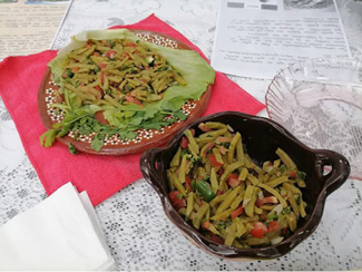 El siguiente platillo puede parecer muy sencillo, pero requiere de una muy buena técnica de limpieza del producto y de respeto en su elaboración. Nos referimos a la ensalada de nopal tapón (Figura 8). Este nombre hace referencia a la especie particular de cactácea que se da en San Felipe. Los nopales tapones abundan para su recolección libre por toda la población y también dan un muy particular fruto —llamado tuna— que es de una forma ovalada con un sabor muy dulce y un color carmesí muy brillante.