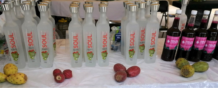 Además de la tuna roja, es necesario mencionar que estos dulces frutos se dan en diversas coloraciones (verdes, amarillas y blancas) que también se encuentran en los territorios sanfelipenses. Con la tuna blanca se realiza un delicado licor al que los productores llaman vino blanco (Figura 9) y suelen consumirlo muy frío, solo o mezclado con alguna bebida gaseosa. Es menos conocido que el colonche, pero sigue siendo una excelente muestra del aprovechamiento de los recursos naturales de la zona.
