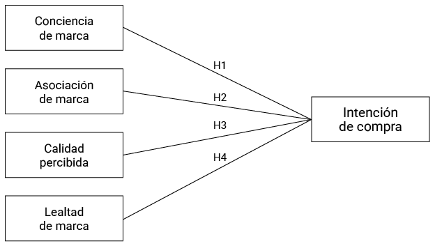 La capacidad de la TPB para captar la complejidad de las intenciones de comportamiento en diversas disciplinas la convierte en una teoría ideal para analizar las intenciones de compra en el presente contexto. Además, este estudio considera la teoría de Aaker (1997), sobre el valor de marca, que se estructura en torno a cuatro dimensiones fundamentales: conciencia de marca, asociación de marca, calidad percibida y lealtad a la marca. La integración de esta teoría proporciona una comprensión holística de cómo influyen los atributos de marca en las intenciones de compra, lo que aporta una perspectiva más rica y matizada del comportamiento del consumidor. Además, esta investigación ayuda a entender cómo los consumidores perciben y se relacionan con las marcas, lo que permite diseñar estrategias de marketing más efectivas y evaluar el valor de la marca.