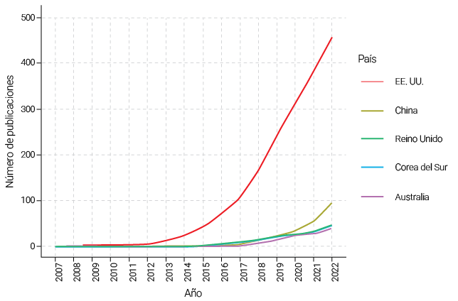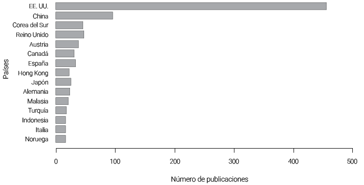 Los resultados preliminares muestran que Estados Unidos lidera con amplio margen la producción científica sobre grit, seguido por China y el Reino Unido. Este liderazgo puede explicarse, en parte, por el hecho de que la mayor parte de la literatura sobre este tema se origina en el campo de la psicología, disciplina que presenta alta concentración de publicaciones en estos países (Elango & Oh, 2022). Las revistas con mayor impacto y volumen de publicaciones sobre grit son el Journal of Personality and Social Psychology y Frontiers in Psychology, aunque también destacan otras como Personality and Individual Differences y Pastoral Psychology, en las que se exploran dimensiones complementarias como la estabilidad emocional, la espiritualidad y la resiliencia.